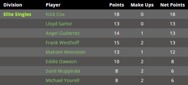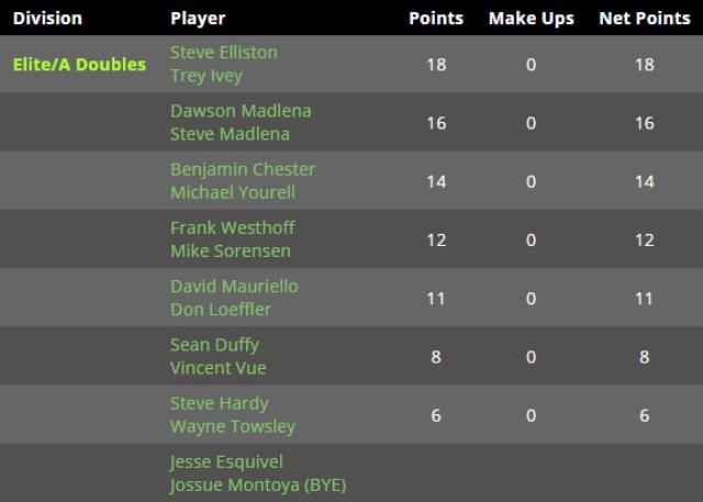 Elite Doubles Season Results